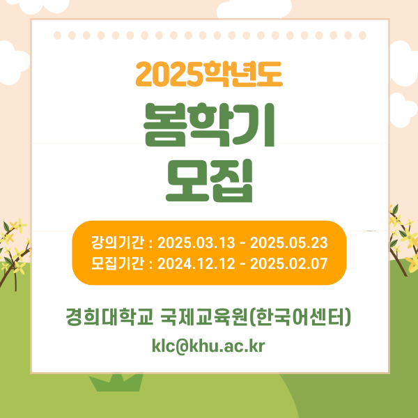 2025학년도 봄학기 한국어 정규과정 (10주) 모집을 시작합니다.