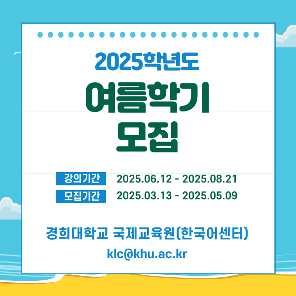 2025학년도 여름학기 한국어 정규과정 (10주) 모집을 시작합니다.